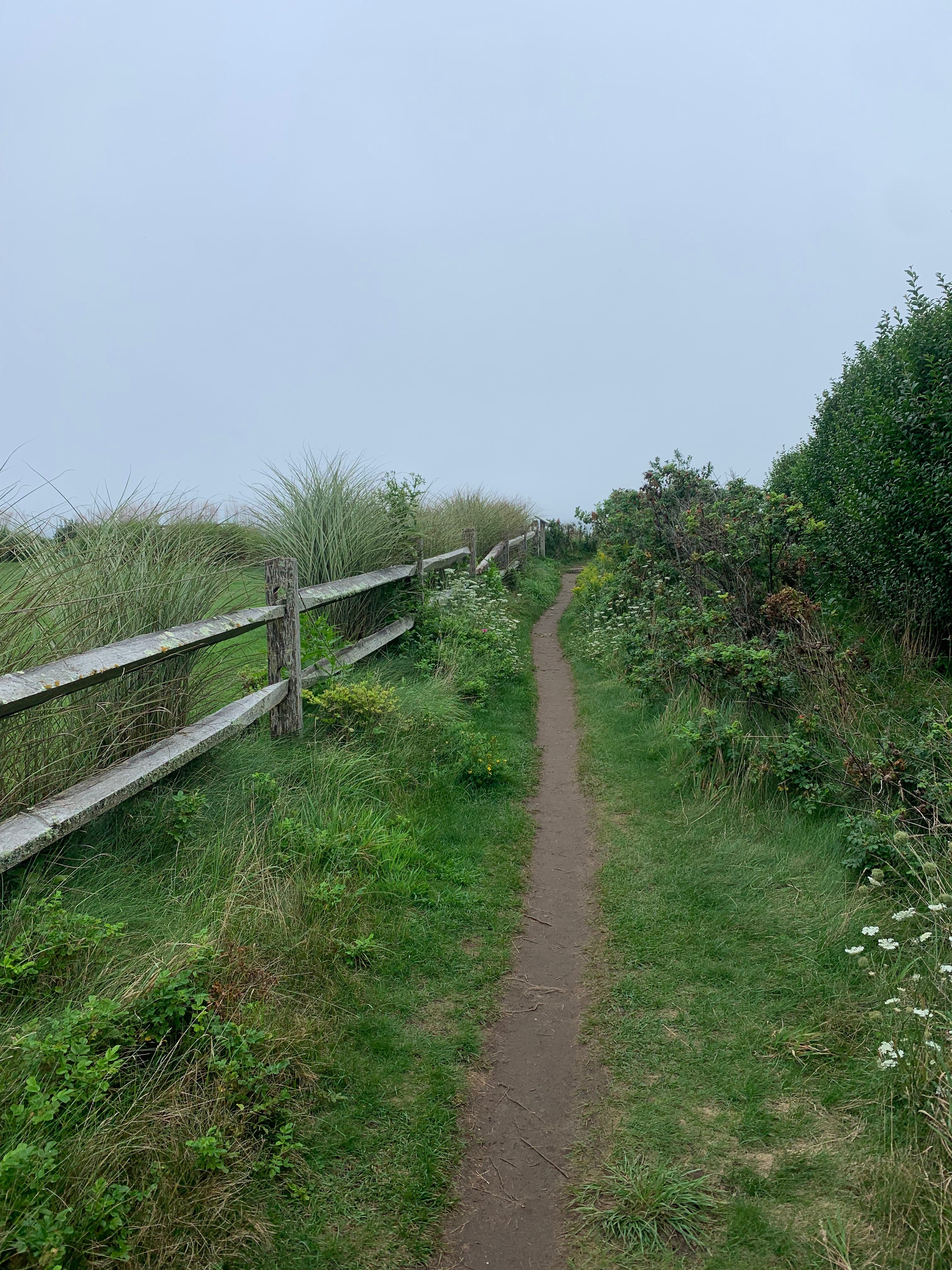 Everything’s showing off. Fat hydrangea heads in luscious blues hang out in moody purples. And the ocean water is wild and mercurial—a lively show alive with rip tides, thick fog and soft grasses.